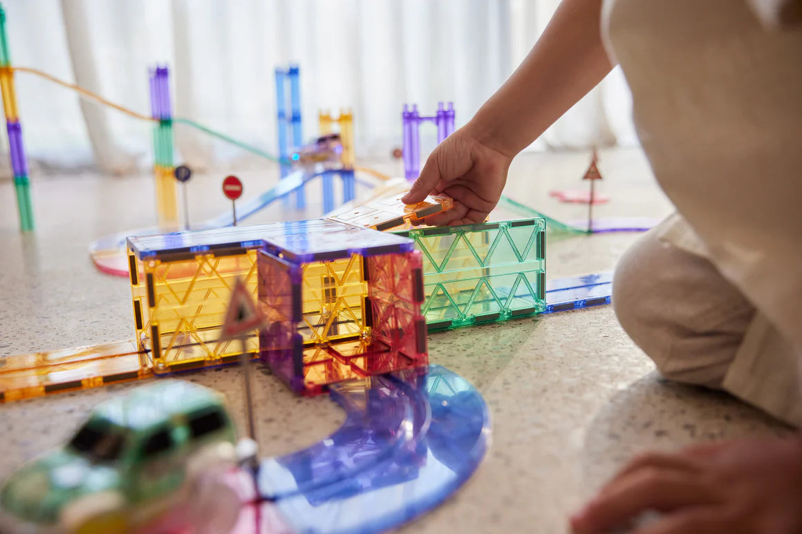 Eindeloos grenzeloos raceplezier met dit 80-delige Race Track Pastel Pack van Cleverclixx. Met deze leuke Pastel set gaat je kindje aan de slag om de coolste racebanen te bouwen op verschillende niveaus. Er worden verkeersborden, een autootje en pilaren meegeleverd voor extra veel plezier.
