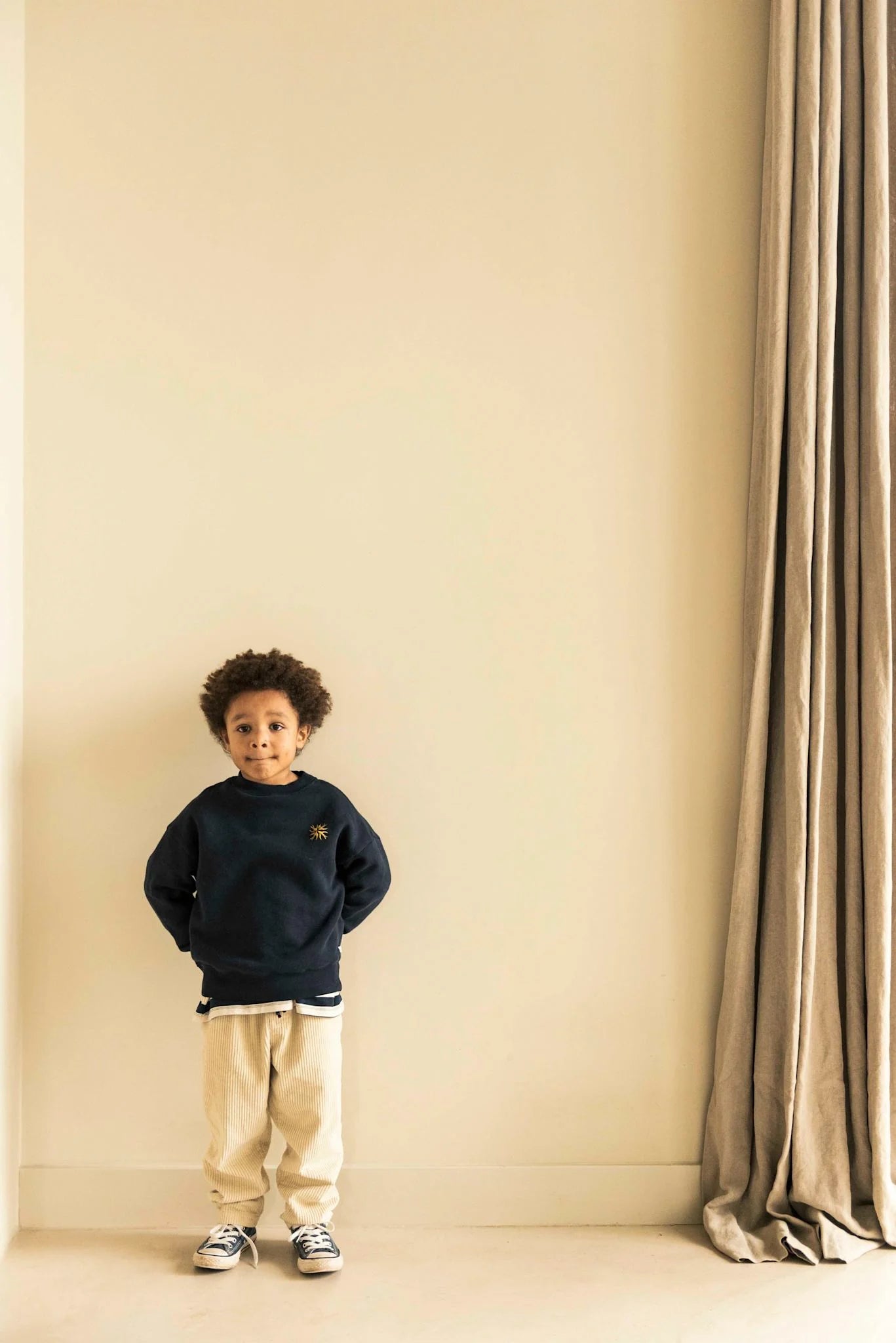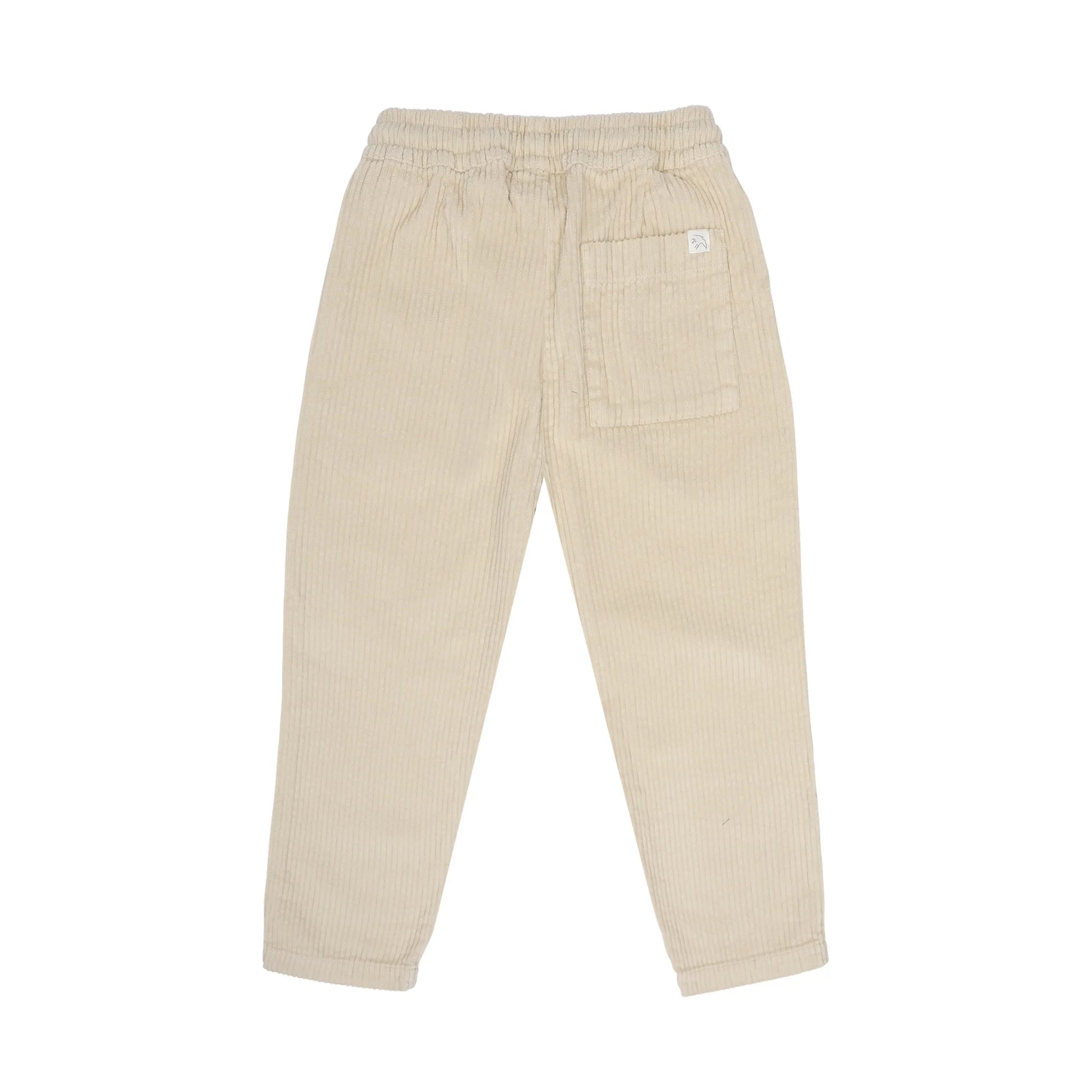 Deze broek heeft een elastische tailleband en koordjes voor een perfecte pasvorm. Gemaakt van een zeer zacht katoenen corduroy. Insteekzakken aan de voorkant. Opgestikte achterzak. Versmalde pasvorm. 100% biologisch katoen.