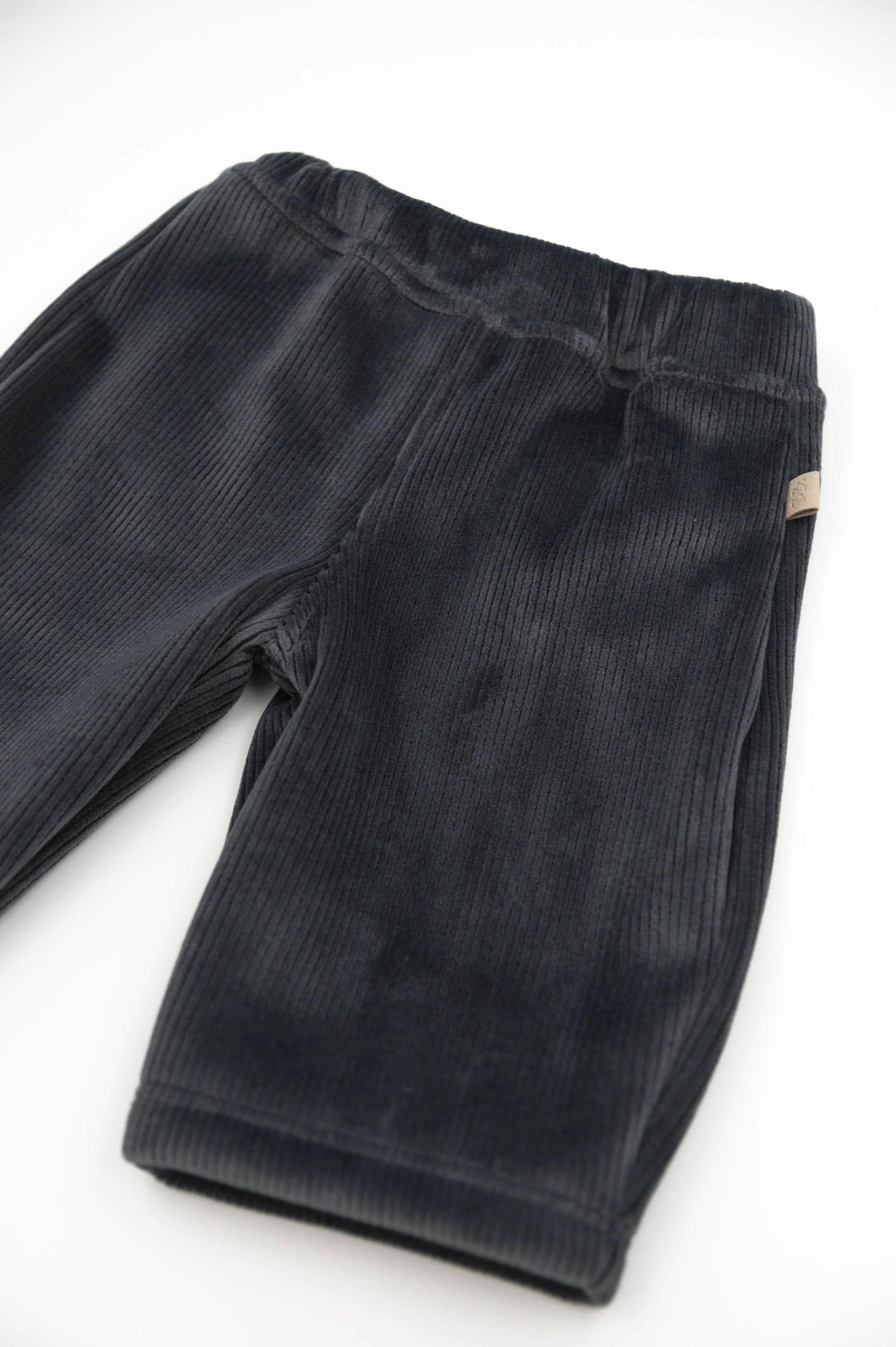 Ze zijn verkrijgbaar in drie delicate tinten - Midnight Blue, Vintage Pink en Mocha Sand - en passen perfect bij shirts, rompers of sweatshirts uit de collectie. De geribde Velvet voelt niet alleen zacht aan, maar is ook gemaakt van natuurlijk materiaal, ideaal voor de tere huid van kinderen.
