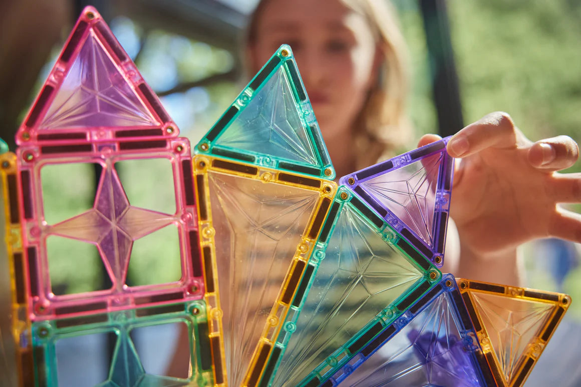 Ook leuk! Bouw tegen de verwarming of andere magnetische oppervlakken en maak zo een verticaal kunstwerk. Of teken er met uitwisbare stiften allerlei letters en cijfers op en ga zo creatief aan de slag met de magnetische bouwsets van Cleverclixx.
