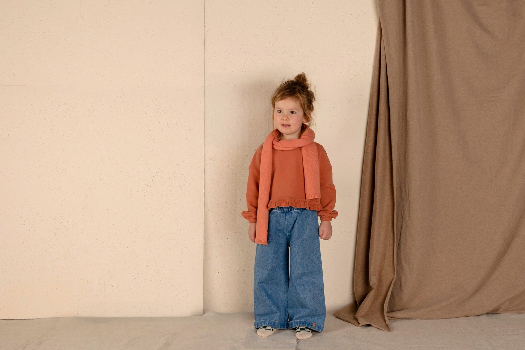 Onze lieve Lo Sweater heeft leuke ruffles aan de onderkant. Het is een kort model en is gemaakt van heerlijk zacht 100% organic katoen in de kleur ‘Sunset’. Leuk voor kleintjes én grotere kids. Het leren Nixnut label is bevestigd aan de achterkant.