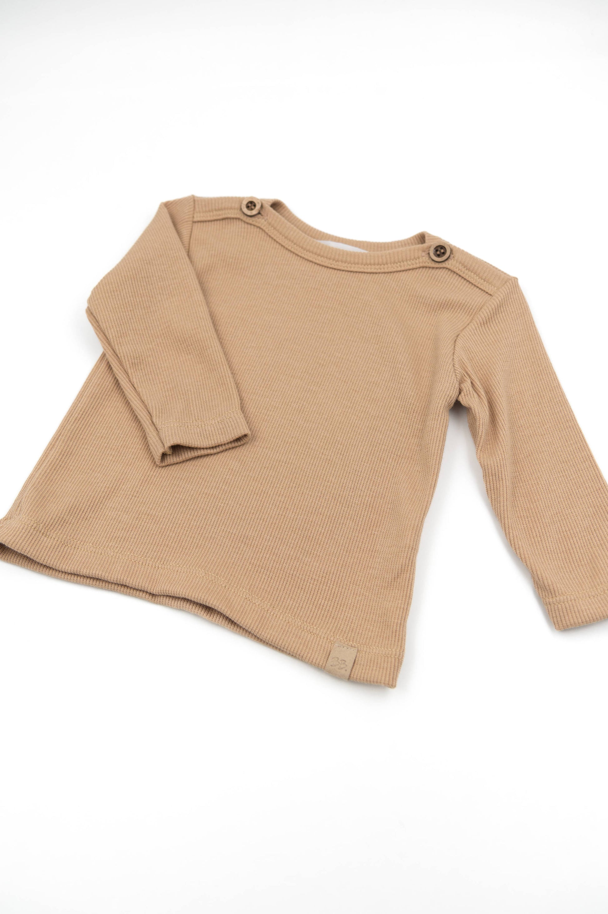 Gemaakt van natuurlijke stoffen zoals geborstelde jersey en ribjersey, is het zacht voor de huid en biedt het de juiste hoeveelheid stretch om beweging te begeleiden. De neutrale, natuurlijke tinten passen gemakkelijk bij elke outfit.