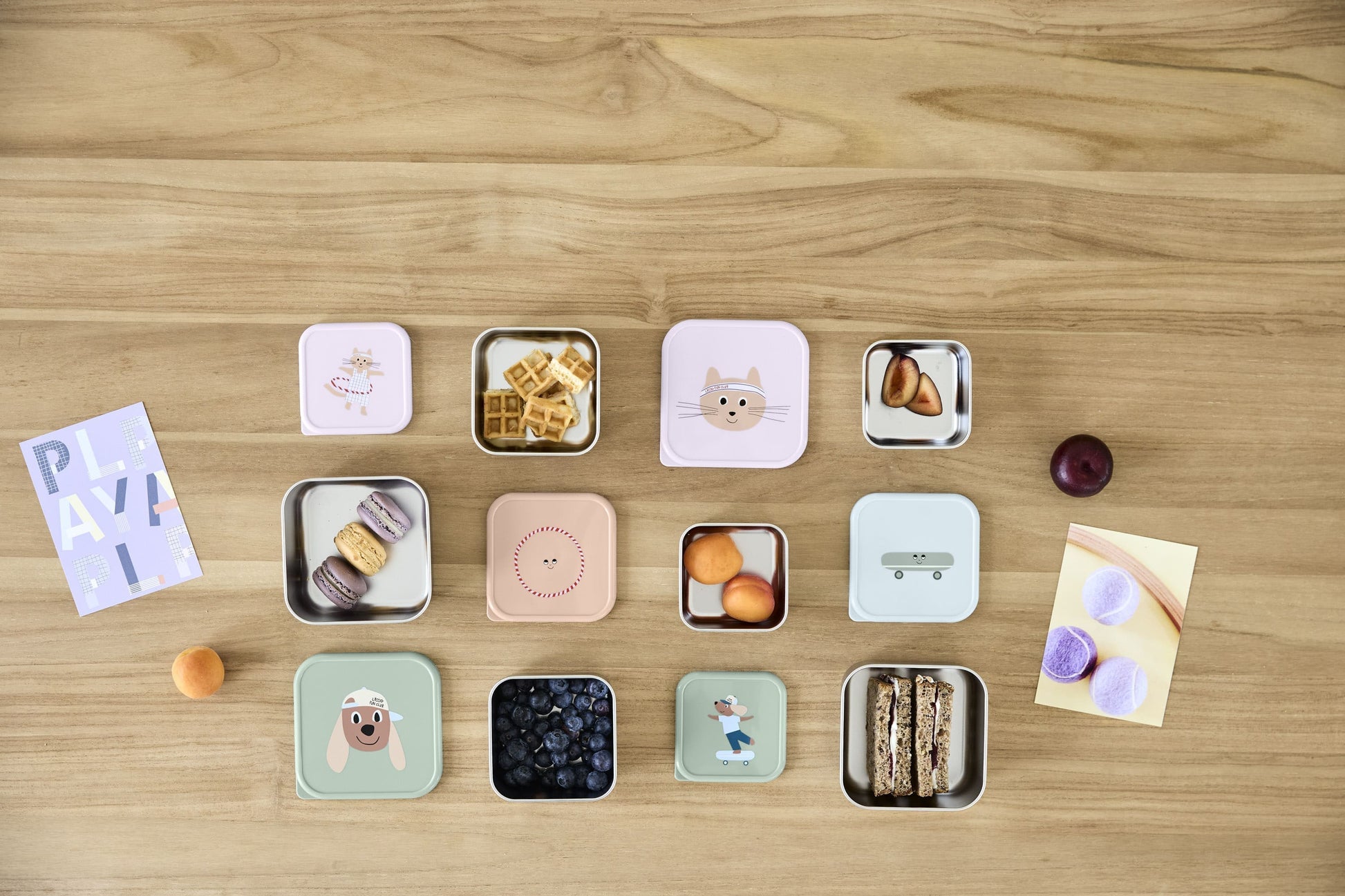 Ondeugend fruit, superleuk! De praktische LÄSSIG roestvrijstalen snackboxen in een set van 3 uit de Happy Fruits-collectie zijn de ideale metgezellen voor school, de kleuterschool of onderweg. Fruit, groente of broodjes vinden hun plekje in de vrolijke snackboxen.