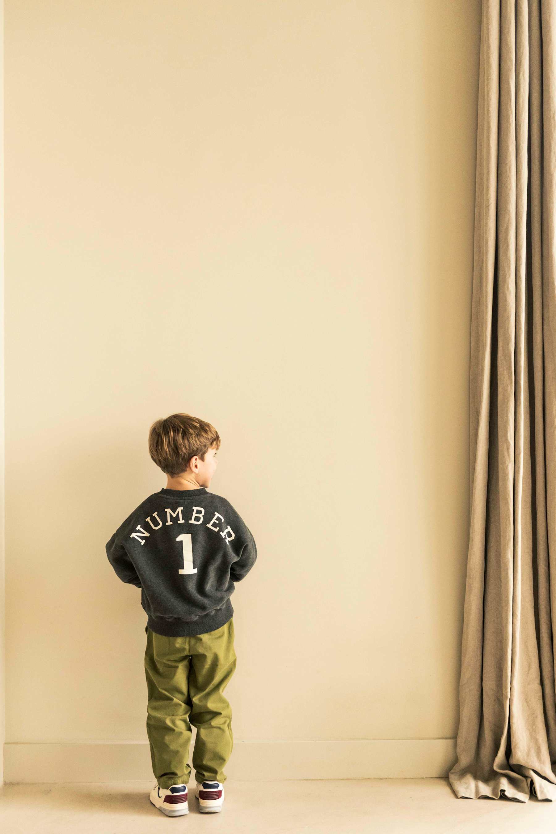 Deze trui is gemaakt van superzachte biologische katoen, de trui heeft NR 1 artwork op de achterkant! Ronde kraag, afhangende schouder. Geborsteld aan de binnenkant voor extra comfort 100% biologisch katoen.
